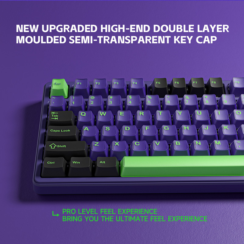 PBT Keycaps with Double-Layer Printing – Resistant to wear and shine while maintaining crisp legends.